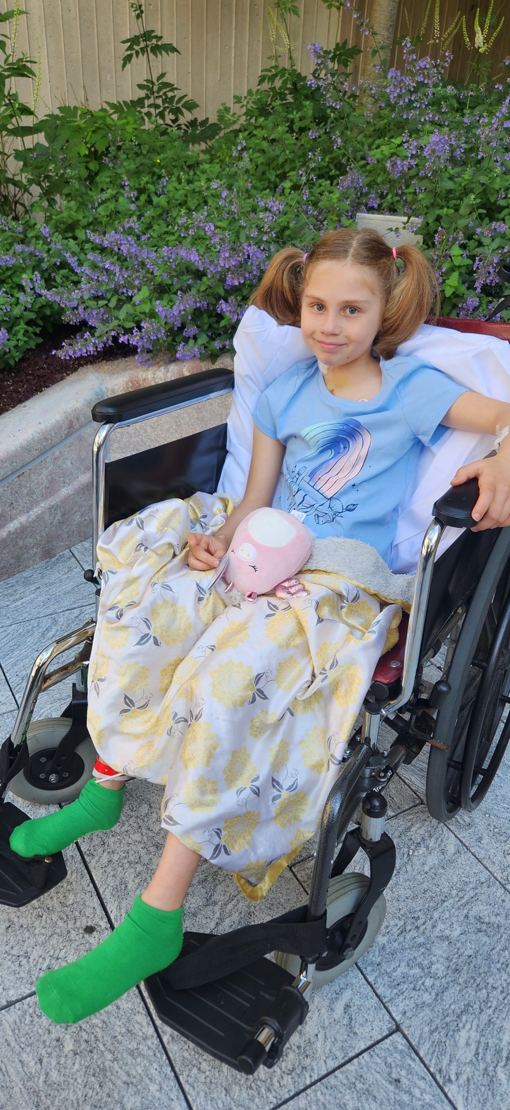 Katja is doing extremely well the last 2 days. She’s been asking to leave her room, visit other areas of the hospital and play in the activity room. She saw both rooftop gardens, both indoor gardens and the WishingStone terrace.